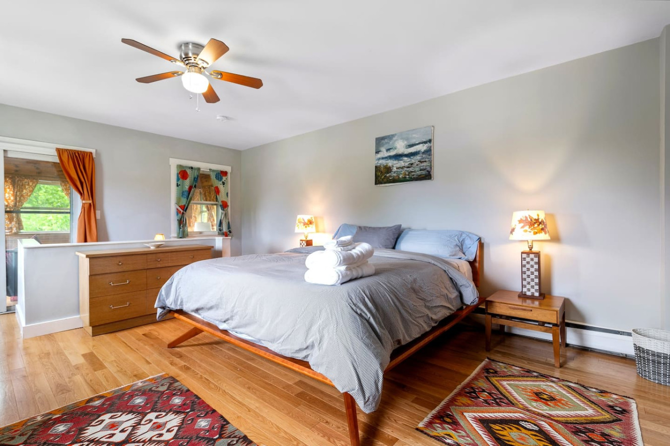 September 2025 5.00Cate’s place was spacious and the bed was extremely comfortable. We loved the bedroom loft. Parking was easy. And the listing was accurate about being on a busy road, but still a beautiful location! The backyard is very peaceful. We did have an issue with wasps so we couldn’t use the covered porch but the host was attentive and tried to resolve that for us. And she kindly offered a discount to make up for it. There were a few cleaning things that were missed between guests, but other than that it was comfortable.