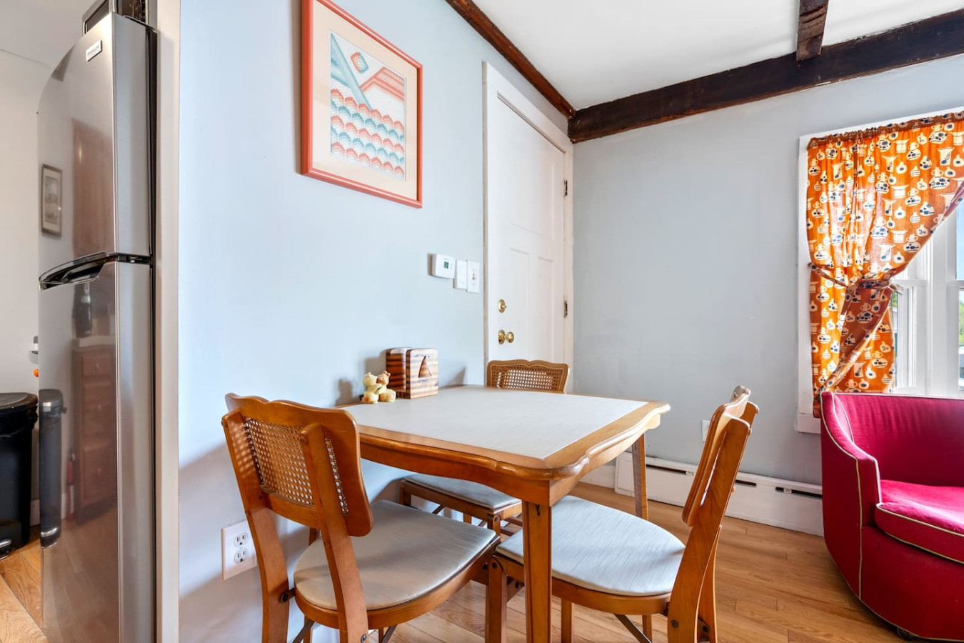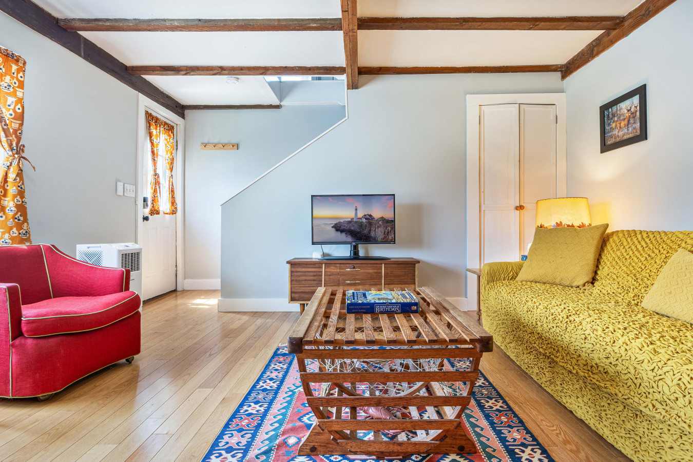 / nightClose to the Jetport, a number of spectacular local beaches, and downtown Portland, our Poet's Nook is ideally situated. Our place has a country feel while being close to the action. This comfortable and u ! nique apartment has a separate entrance, free parking, and great views of the Maine sky. There are horses across the street, a friendly cat, and lots of flowers. You will see us coming and going in our driveway, as we are active people and love our projects. Sunny, comfortable, eclectic, and lots of books. Great views of the sky and super quiet. Rural setting but close to everything you'd want or need. You should know that the road in front of our house is entirely quiet because it's one of those winding country roads that people love to drive fast on, so our place does not have a secluded feel to it-- unless you're in the back yard or sitting on our back porch. Guests have the apartment (which has a separate entrance) entirely to themselves. Access to the backyard and back porch. If you need a load of laundry done, just ask. While there isn't a washer and dryer on the premises, we're happy to run a load for you. You can text us through the Airbnb message app, or just knock on the door. We're happy to attend to any concerns you might have in a hands-on fashion. That said, if you're an introvert who is in need of some quiet time, we'll leave you alone! We get it. We live in a rural neighborhood in Scarborough, near some small subdivisions down side road, but mostly amid two+ acre lots just up the road from Flaherty's Farm, where they sell live lobsters and fresh vegetables. Even though we're just a 3 - 6 miles from everything (groceries, mall, beaches, Portland, airport) it feels like being in the country. Scarborough is rural. There are trails and beaches to walk on, but we otherwise get everywhere by car. Parking is easy wherever you go (with the exception of Higgins Beach, where I suggest you find the public parking lot, as parking by the beach can be difficult). Parking parking? That's a different matter. On weekend evenings, that requires patience and persistence. This is a two-floor apartment with a private entrance. We have a very comfortable queen-sized sleeper sofa on the first floor. As such, three can stay in the apartment comfortably, and couples who like to travel together (and save money) can definitely make this space work and get a good night's sleep. The upper floor has a large and sunny bedroom with a king-sized bed, a full bathroom, and a sunroom. There are televisions on both floors. There's also the sunroom, which is a nice and private space for reading, taking on the phone, meditating, etc. We want you to be comfortable. If you have any questions about whether our space is a good fit for you, don't hesitate to reach out.